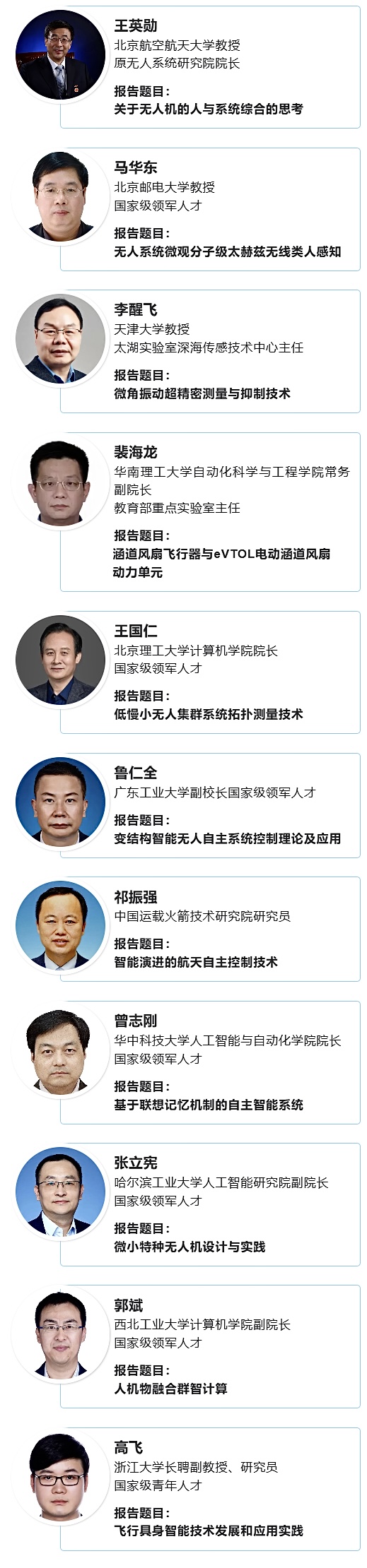 段海滨 中国自动化学会会士、北京航空航天大学教授、中国自动化学会无人飞行器自主控制专委会主任、中国航空学会制导、导航与控制分会主任、《制导、导航与控制(英文)》期刊主编