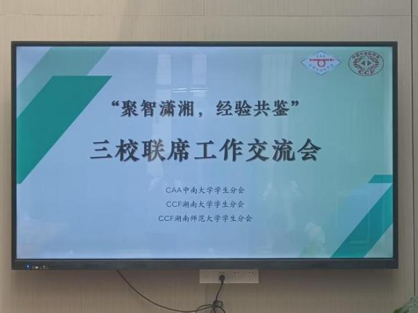 此次“聚智潇湘,经验共鉴”三校联席工作交流会在热烈的讨论与深入的互动中圆满落幕。通过分享碰撞,三校学生分会汲取了彼此在活动策划、会员服务、公益实践等方面的宝贵经验,不仅为三校学生分会提供了一个宝贵的交流平台,为CAA中南大学学生分会带来了诸多收获与启示,更奠定了未来合作的基础。相信以此次交流为起点,CAA与CCF各学生分会将进一步凝聚智慧、携手并进,共同推动学术创新与会员青年成长,为服务学科发展和社会需求注入更多青春力量!