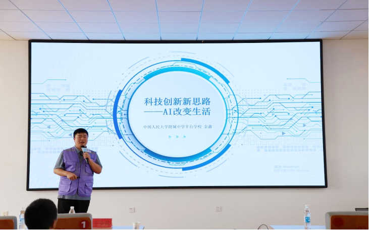 金鑫开展了以科技创新新思路——AI改变生活为主题的讲座,巧妙融合互动体验与实例解析,带领孩子们沉浸式感受人工智能技术在日常生活中的广泛应用。他以人大附中丰台学校学生开展的科技创新活动为参照,引导现场学生从身边生活实际出发,发现学习、生活中的具体问题,并尝试结合 AI 技术构思解决路径。为让 科技改变生活的理念更易理解,他还结合 AI 老年人防跌倒系统设计、基于 AI 视觉的青少年情绪监测、AI 手语翻译等贴近生活的实例,直观展现 AI 技术在民生服务、健康关怀等领域的应用价值,让学生们深刻体会到科技与生活的紧密联系。