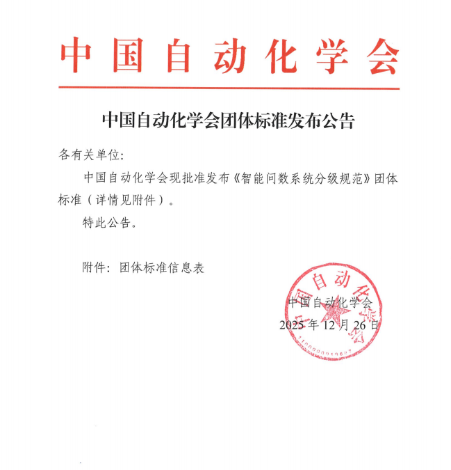 中国自动化学会现批准发布《智能问数系统分级规范》团体标准(详情见附件)。
