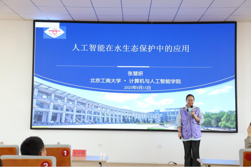 张慧妍在报告中聚焦人工智能在水生态保护中的应用,通过生动的案例和详实的数据,展示了人工智能技术在环境保护领域的巨大潜力,激发了师生们对科技改善生活的美好憧憬。报告围绕水生态的监测与治理问题,介绍显微镜观测图像与视频处理用到的多种AI智能识别与建模算法以及设备的研发,从水生态领域的应用需求与问题出发,探究人工智能技术为水生态研究带来的机遇与挑战。