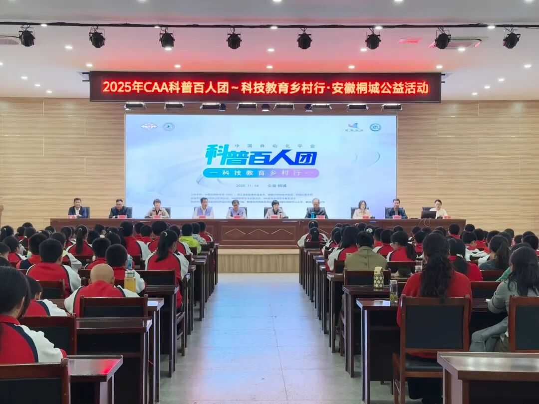 2025年11月14日,中国自动化学会(CAA)携手浙江省智航教育基金会、桐城市科学技术协会、桐城市教育局共同举办的“CAA科普百人团—科技教育乡村行・安徽桐城市”公益活动圆满完成。中国自动化学会理事、普及工作委员会主任、复旦大学教授张军平,中国自动化学会普及工作委员会副主任、福建理工大学教授陈德旺,北京工商大学计算机与人工智能学院高级实验师马慧鋆三位百人团专家,为桐城市范岗中心小学和桐城市第二中