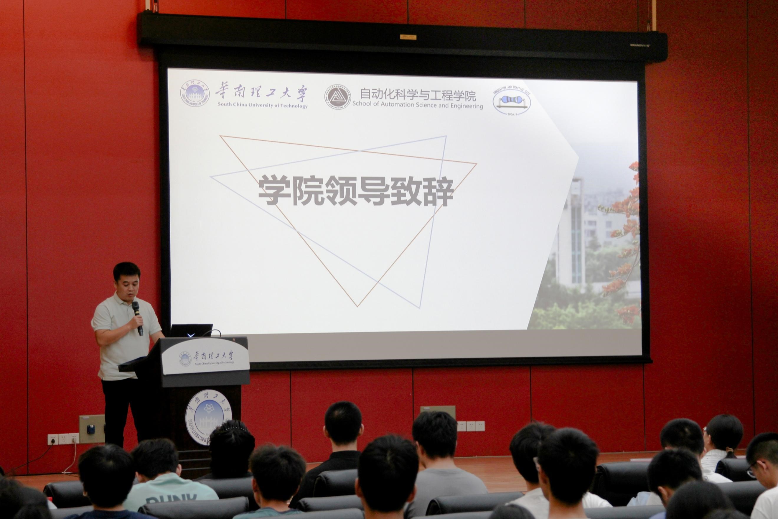 活动在热烈的掌声中拉开帷幕。学院党委副书记申宏宇代表学院致辞,对信步科技的鼎力支持表示衷心感谢,并向顺利晋级二轮考核的同学们表示祝贺。申书记在讲话中指出,学院一直高度重视学生创新创业实践能力的培养,特别肯定了中国自动化学会华南理工大学学生分会和大学生创新实践基地在促进学生科创活动方面的工作。他鼓励同学们珍惜这次比赛机会,既要勇于探索、敢于创新,在动手实践中理解工程、热爱创新,也要兼顾基础课程学习,实现全面发展。