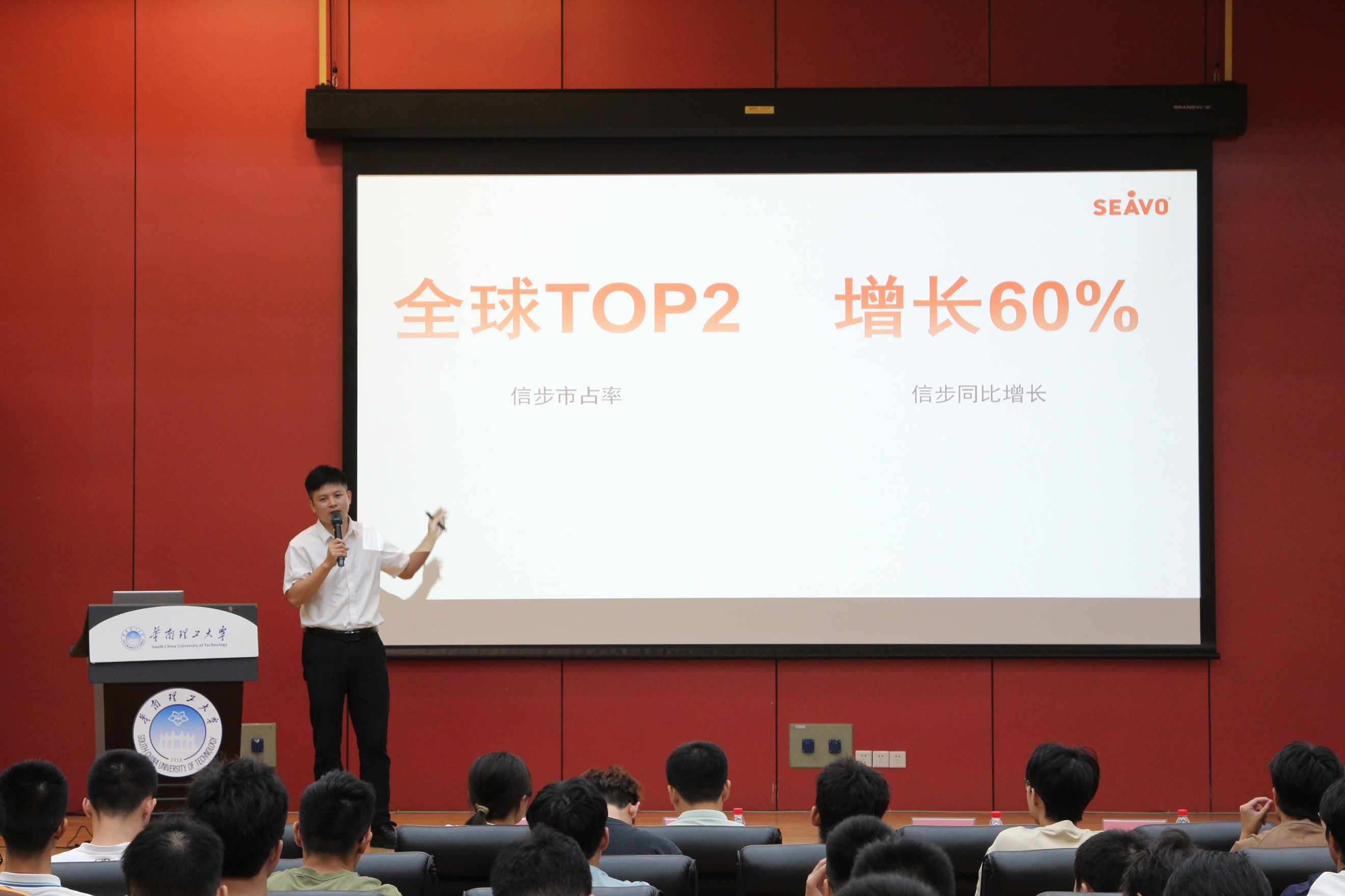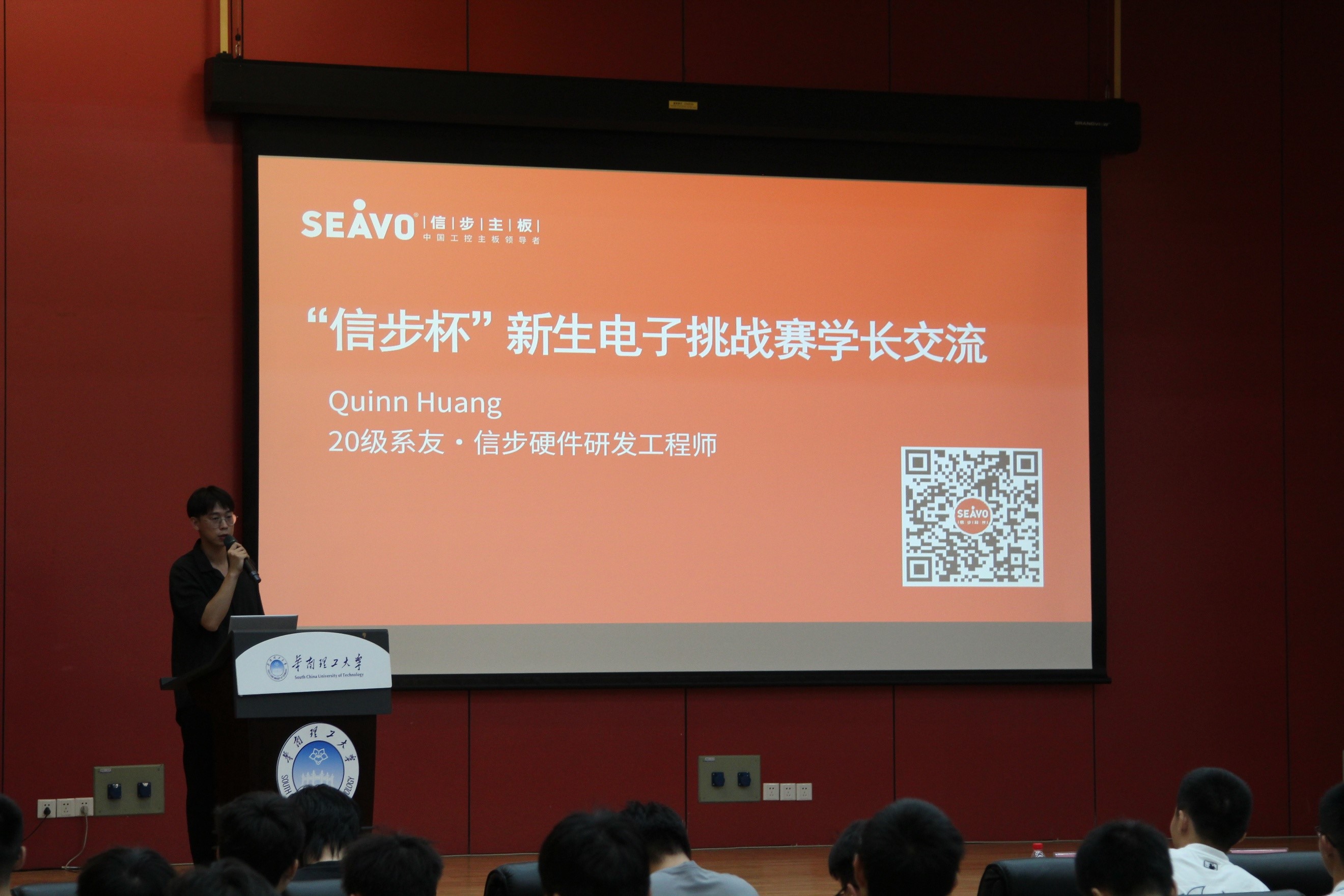 “科技的背后离不开行业前沿的持续探索与深耕。” 信步科技首席招聘官莫奔先生受邀作专题讲座。他介绍了公司在智能硬件领域的前沿成果与产业布局,分享了信步科技作为一家“小巨人式企业”的创新历程。学生分会通过邀请企业专家进校园,为新生提供了了解行业动态的机会,搭建了校企沟通的桥梁。学院2024届校友、信步科技硬件工程师黄文秋先生结合自身在学院成长的经历给在座新生提出了科研和学习的建议。