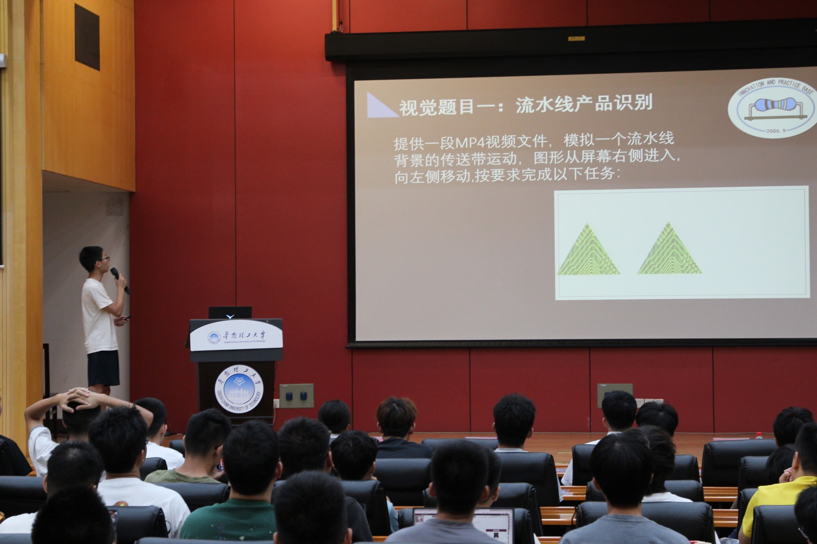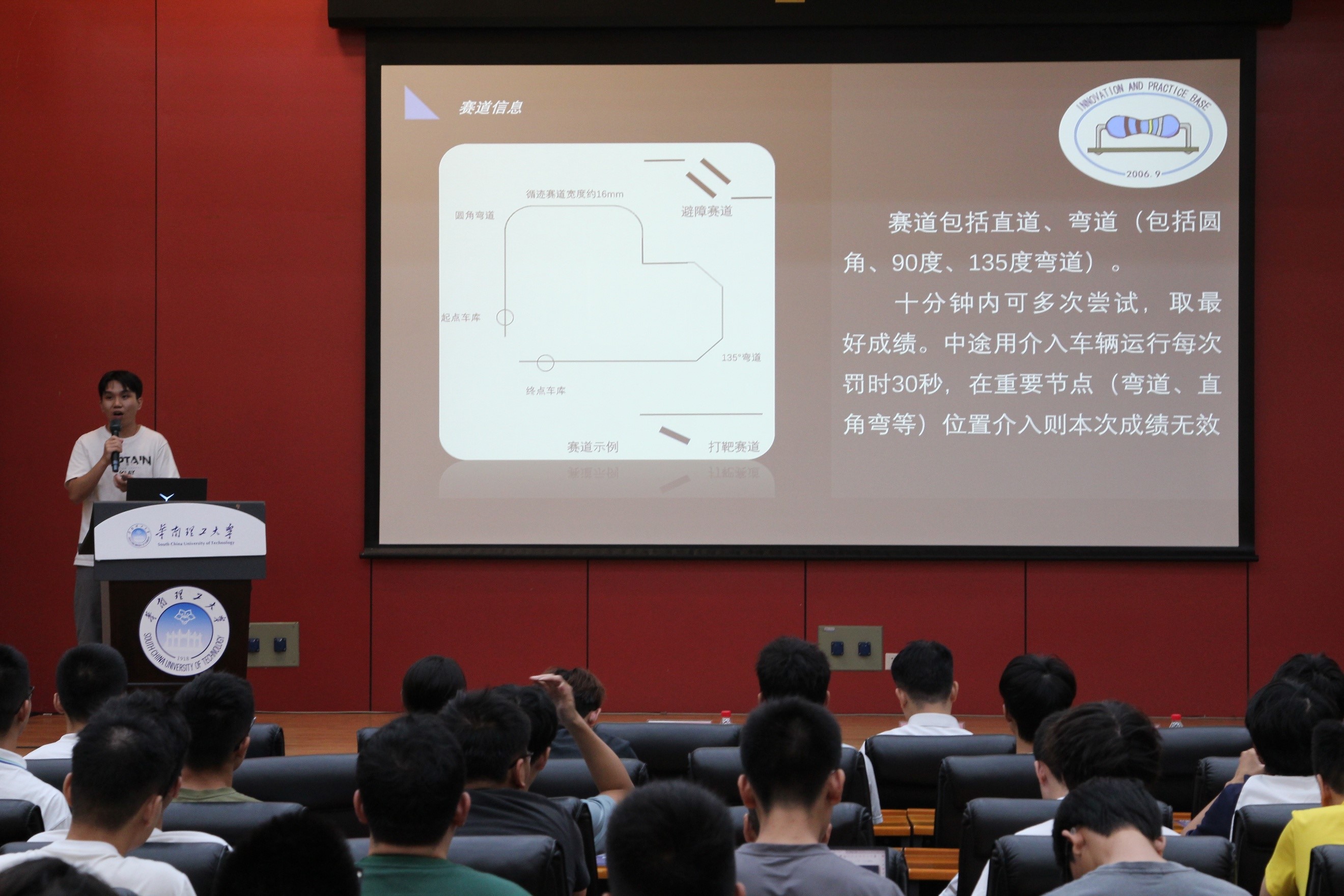 随后,学院创新实践基地的负责同学们依次介绍了二轮考核赛题。本轮比赛设置“小车组”“视觉组”“硬件组”三个方向,题目难度和综合性显著提升,旨在考察同学们对自动化系统、智能感知与控制原理的理解与应用。二轮开题标志着赛事进入实战阶段,学生将会面临更具挑战性的设计与实现任务。