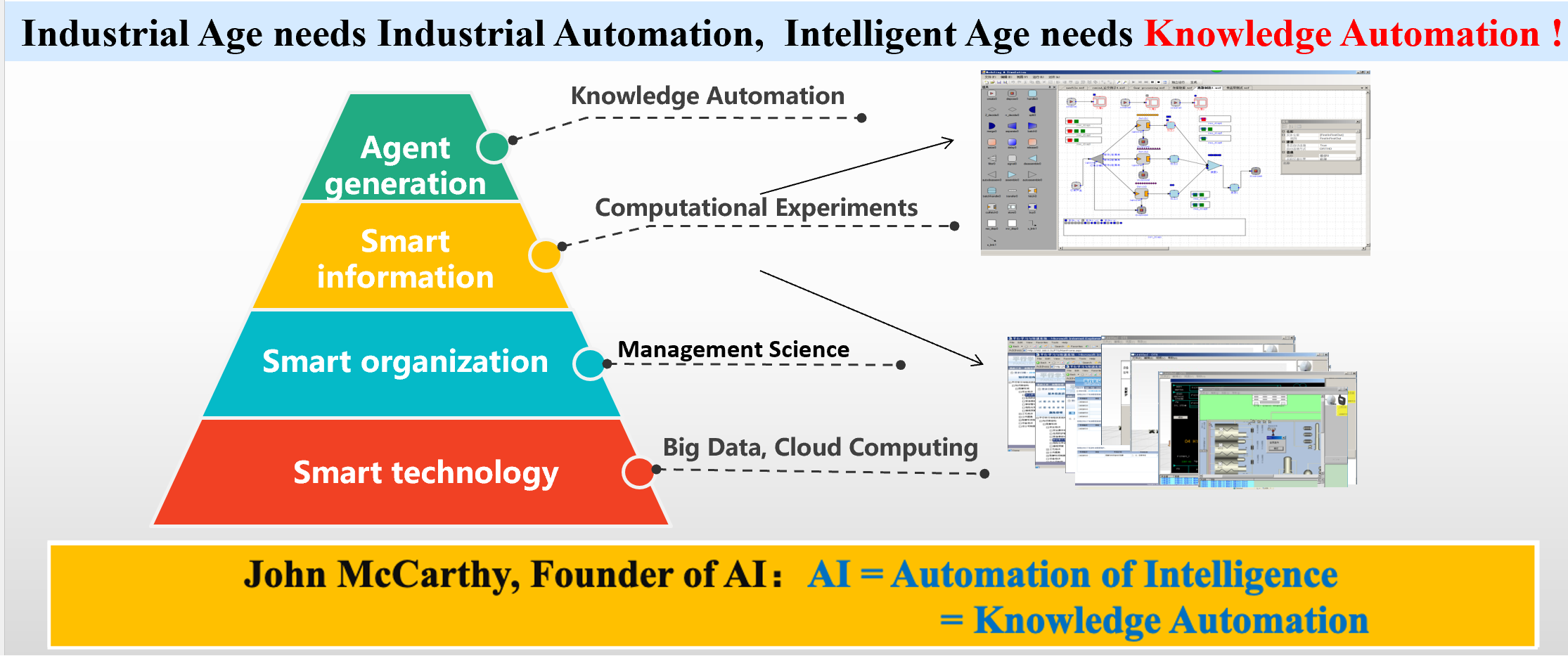 人工智能的创始人约翰·麦卡锡在1992年曾亲口对我说,AI就是"Automation of Intelligence"的缩写,而这一概念的核心就是“知识自动化”。麦卡锡在交流中强调,机器人研究的实质即是自动化,而他所从事的则是智能的自动化,其本质即是知识的自动化,如图1所示。这一观点也深刻地揭示了教育在未来必将受到重大影响。当前学校传授的大量专业知识,在未来可能不再需要依赖专门教师进行讲授,因为这些知识将逐渐转化为普遍的科学素质与常识,成为不学也必须掌握、不会即可随时获取的内容。传统教育中对经典著作的背诵,例如《论语》《道德经》,曾被视为博士学位的标准,历史上2000年前后博士的界定就是基于对一部书中某一章节的掌握。而在后面的科举时代,状元所需掌握的知识总量若以今日的“Token size”或比特数量衡量,实际上相当于小学程度。由此可见,知识教育体系及其学位在历史演进中不断发生变化,我们必须构建与AI知识自动化相应的体系,特别是尽快消除“刷题”与应试的危害。