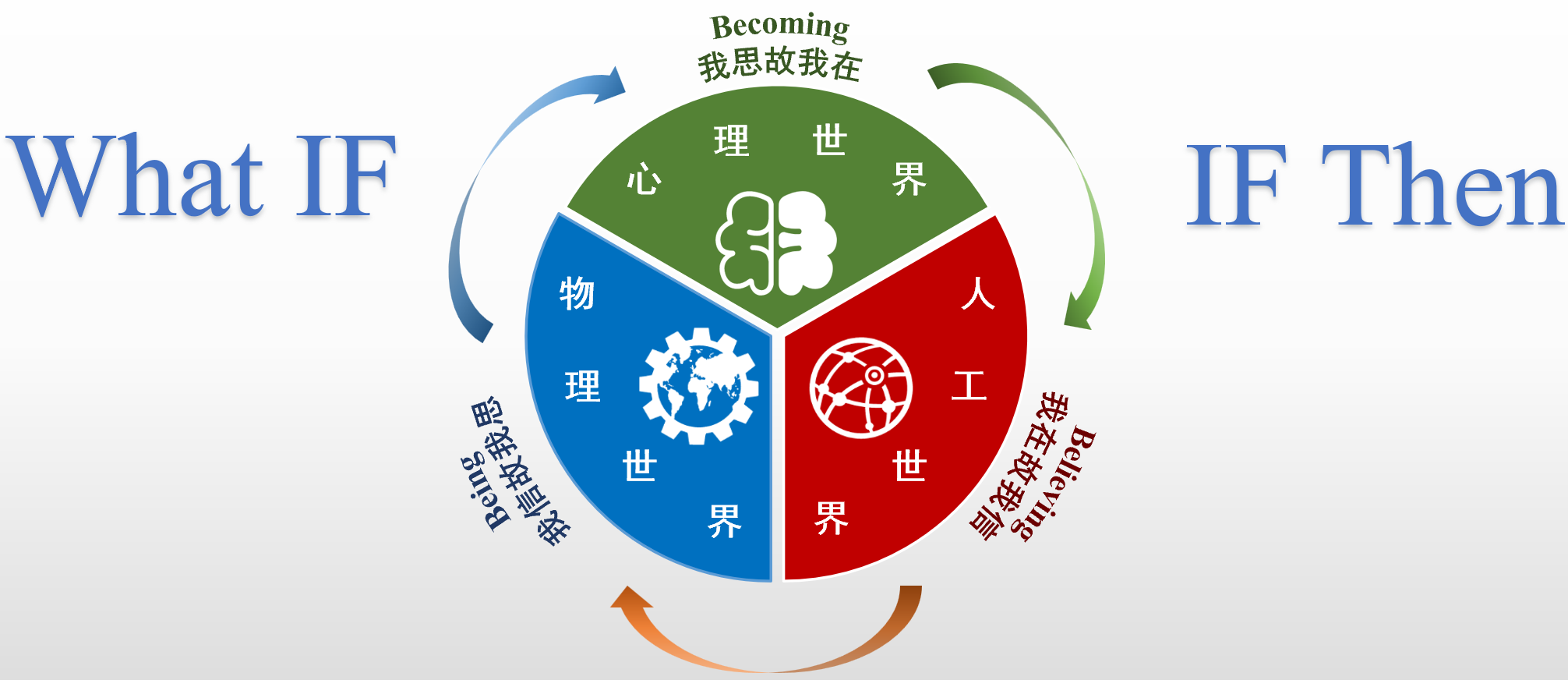 回到控制论的本源,其核心理念在于反馈与闭环,而这正是“循环因果”与“三个世界”理论相契合之处。若站在不同的世界立场,笛卡尔“我思故我在”可延展为“我在故我信,我信故我思”,最终形成整体的哲学逻辑。这种逻辑既能将社会科学中的“What if”与工程理科的“If then”结合起来,也能实现从小知识到大数据,从大数据到深智能的演化。同理,在教育领域,可以通过这一机制将个人零散的教育知识汇聚为教育大数据,再依托人工智能构建“教育深智能”。因此,教育与管理是人工智能未来最先应用和变革的关键领域,由此可实现“天人合一:人机结合、知行合一、虚实一体”的理想状态。在此过程中,理工与文科将不再分立,而是融合为“一科”:“融科”。